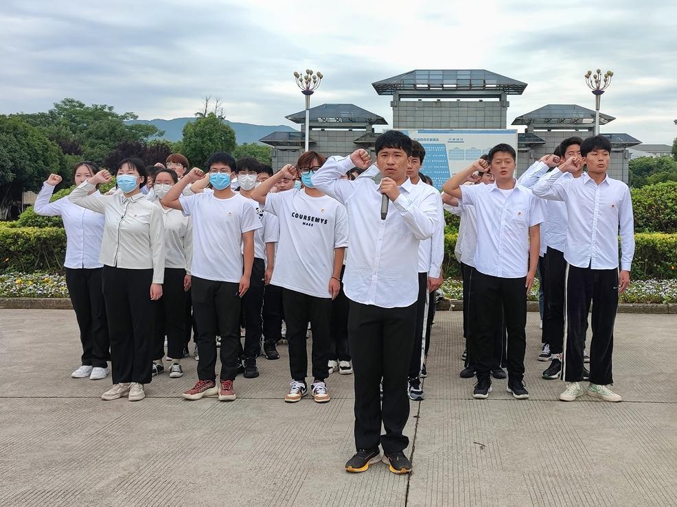 随后,四位同学通过朗诵欧震先生的《青春中国》爱国诗歌,抒发了对革命先辈的敬意,对祖国的热爱、对青年的赞颂。张志勇同学作为学生代表做国旗下演讲,呼吁青年学子发扬开拓进取、拼搏奉献的革命精神,笃行报国之志,勇担民族大任。最后,全体同学在方昌盛同学的带领下一起重温入团誓词,进行了庄严的宣誓。
