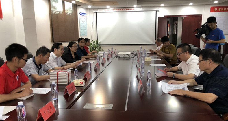 座谈会上,孙晓峰向黎川张恨水旧居赠送了谢家顺教授主编的《回望张恨水》丛书,并为“ylzzcom永利总站线路检测通俗文学与张恨水研究中心黎川研究基地”揭牌。