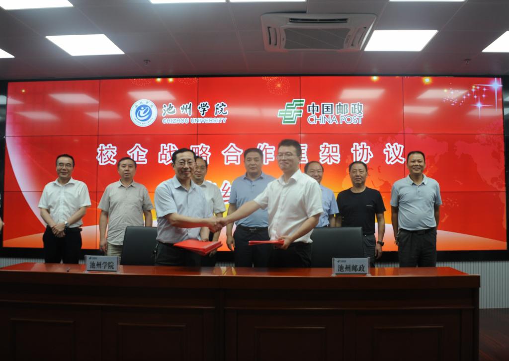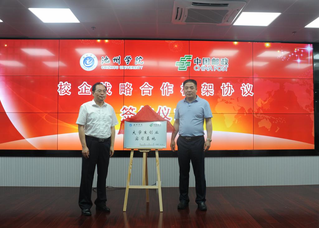 7月9日,ylzzcom永利总站线路检测与池州市邮政分公司签订战略合作协议,进一步加强校企合作。校长柳友荣出席签字仪式,并与市邮政分公司总经理俞晓虎共同为大学生创业实习基地揭牌,副校长王延寿、汪贤才以及市邮政分公司副总经理王强、钱鹏参加活动。