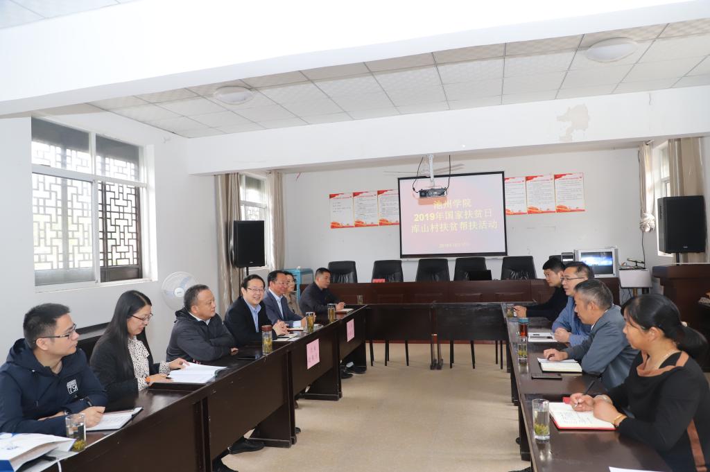 孙晓峰在库山村村部与石台县及丁香镇、库山村“两委”及学校驻村扶贫工作队进行了座谈并就学校对口扶贫工作进行了交流。孙晓峰详细了解对口扶贫工作开展情况,并就扶贫工作如何结合“不忘初心、牢记使命”主题教育提出要求。他指出,习近平总书记强调“人民对美好生活的向往就是我们的奋斗目标”,学校扶贫工作队要结合镇村发展状况积极谋划,推进精准脱贫攻坚,要从精神上和行动上给予贫困户改变思想观念,“扶贫先扶志、扶贫必扶智”,不仅要让贫困户从大脑里破除“人穷志短”的陈旧思想,而且要发挥ylzzcom永利总站线路检测智力优势,加大对贫困户进行科技、文化、知识上的帮扶,拿出更精准的举措、更超常的力准点,助推石台库山村脱贫摘帽。孙晓峰要求,工会、后基处等部门要畅通市场渠道,加大农特产品进校园力度,完善产业带贫益贫机制,帮助库山村因地制宜培育特色农业,辐射带动更多群众致富,持续巩固脱贫成效。