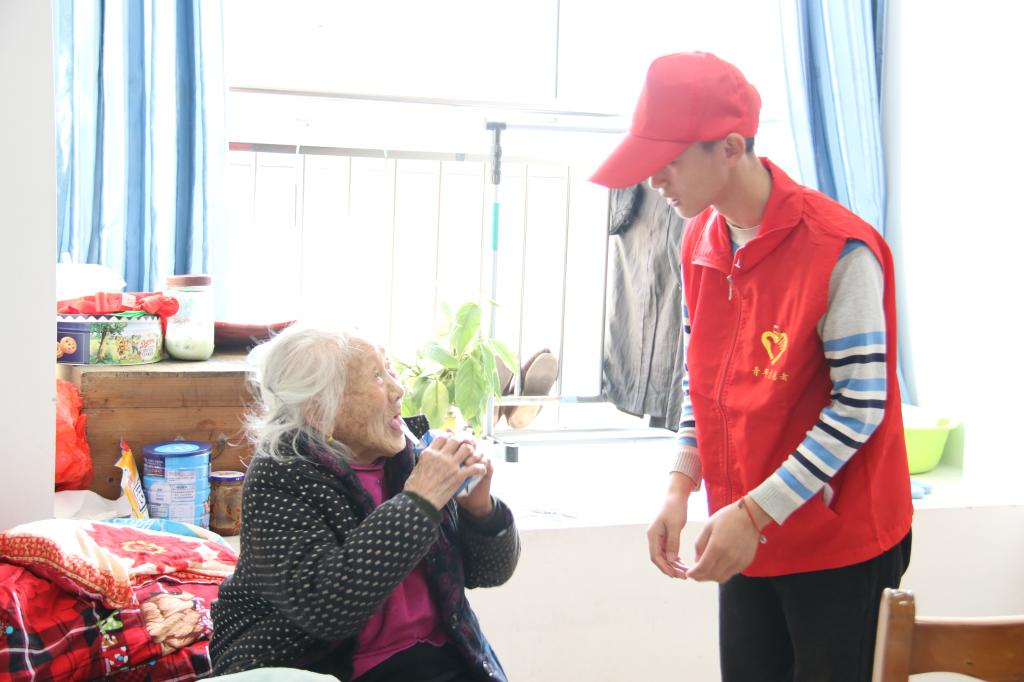 在辖区康寿养老院,志愿者们为老人们分发水果、面包等慰问品,帮助老人修剪指甲,陪老人们聊天谈心,志愿者们悉心周到的服务受到一致好评。