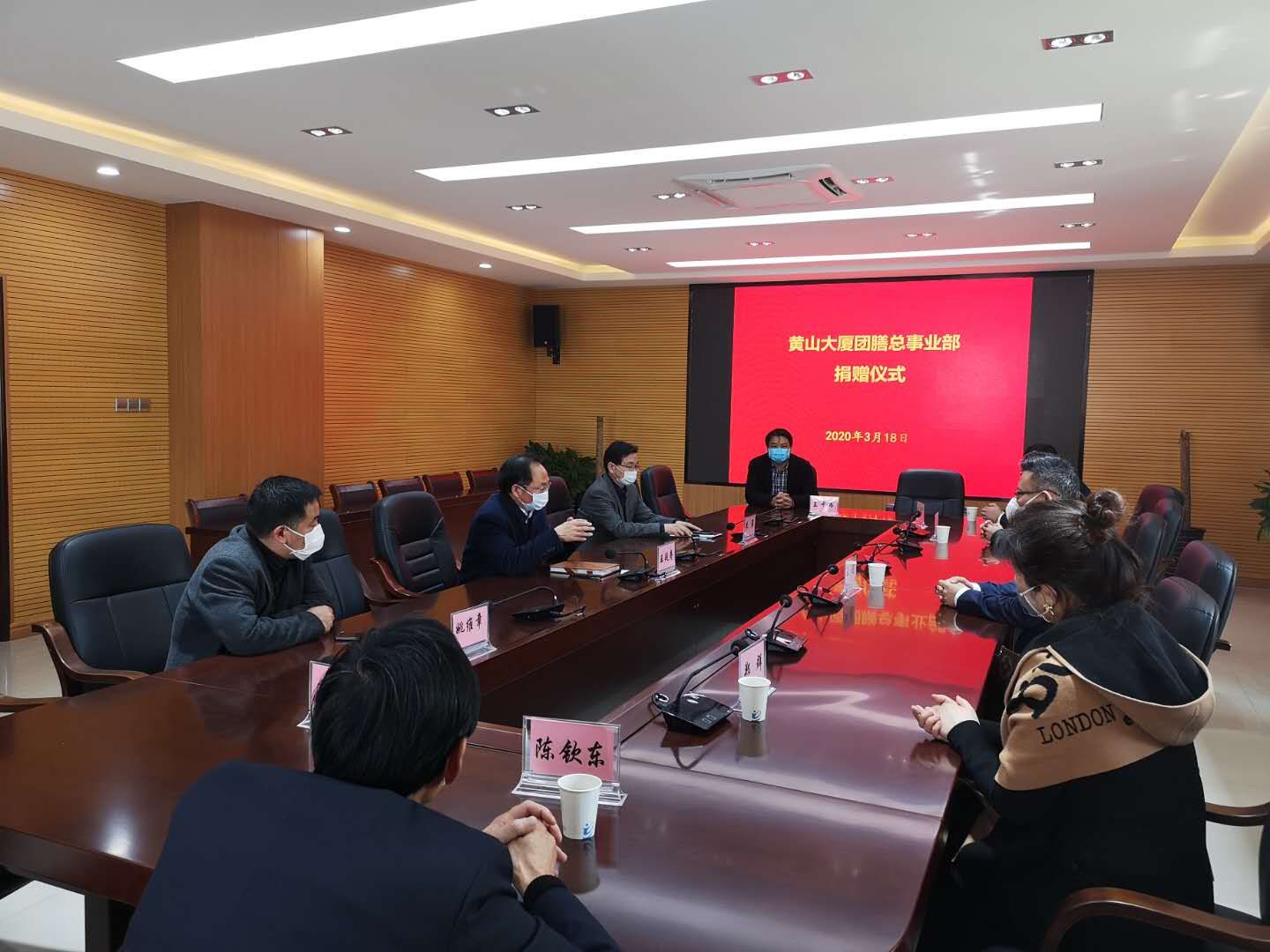 3月18日上午,黄山大厦团膳总事业部董事长王健一行五人来永利官网,向永利官网捐赠口罩、医用酒精、84消毒液、消毒喷壶等疫情防控急需物资。校党委书记孙晓峰、校长柳友荣会见了王健一行,副校长王延寿代表学校接受捐赠。
