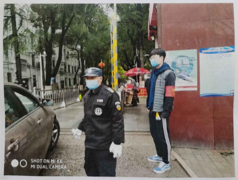 新冠肺炎疫情发生后,宣传部职工袁梦成积极响应地方党组织的号召,主动加入到家乡的疫情防控工作中。在值班卡点,袁梦成主动申请夜间值班,对路口来往的车辆进行排查登记,引导人们做好自我防护,积极动员居民做好消毒防护工作,主动参与对公共区域的卫生消杀活动,为疫情防控做出了积极贡献。