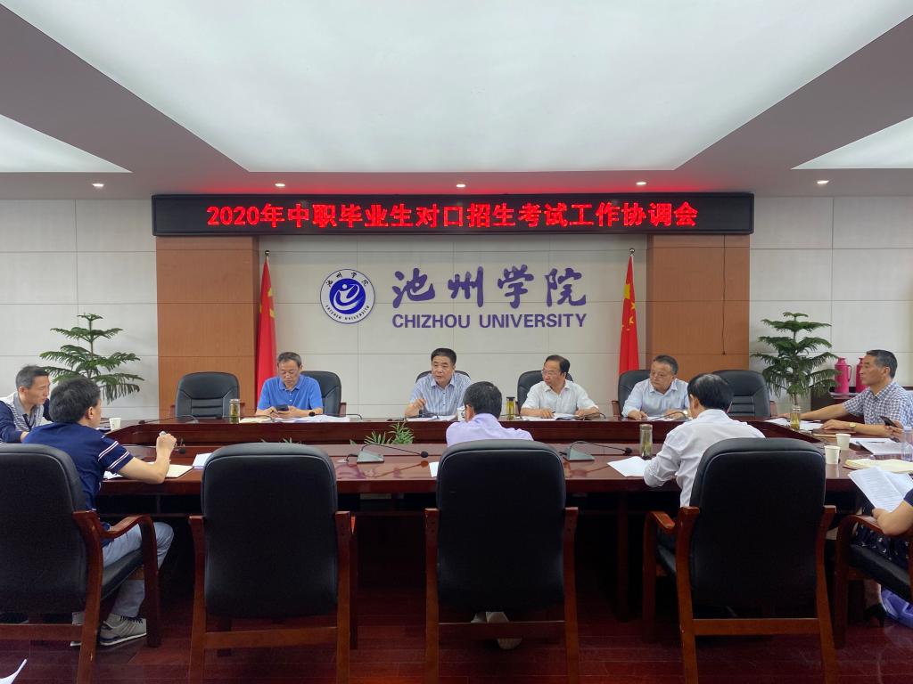 6月3日上午,2020年中职对口招生考试工作协调会在办公北三楼会议室召开。校长柳友荣、副校长王延寿、纪委书记汪海出席会议并讲话,副校长阳光宁主持会议。