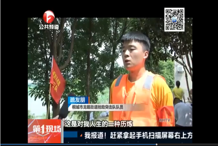 方煜与张文是同班同学,家在贵池。了解到家乡白杨水坝发生汛情时,他立刻报名参加防洪防汛志愿者工作。从7月13日开始,方煜和其他志愿者一起与村民每天坚守在大坝上,巡逻防止坝内出现漏洞,冒着暴雨紧盯堤坝有没有“涌泉”,一旦发现就要立即上报处理,否则就会存在溃坝的风险。这也是方煜进入大学后第二次参与志愿服务活动,在疫情期间,方煜也参加了家乡防疫工作,用行动彰显了当代青年大学生朝气蓬勃、乐于奉献的精神。