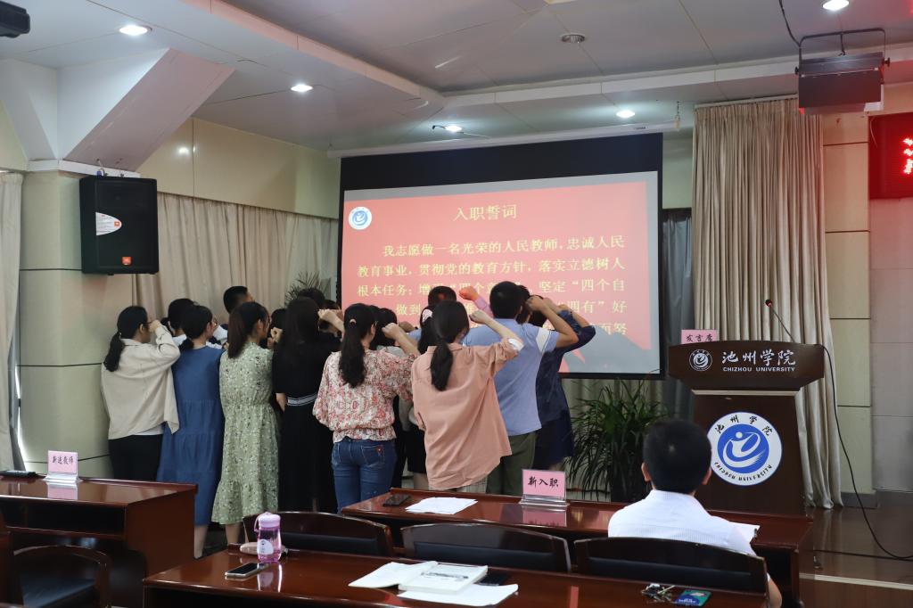 受表彰教师代表叶三梅和新入职教师代表张烨琳分别发言。新入职教师进行了入职宣誓。