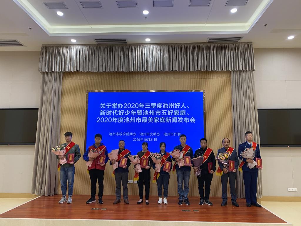 10月21日,市政府新闻办、市文明办、市妇联联合召开2020年第三季度池州好人、新时代好少年暨池州市五好家庭、2020年度池州最美家庭新闻发布会,并进行了表彰。永利官网体育学院李义涵同学荣获“池州好人”称号。