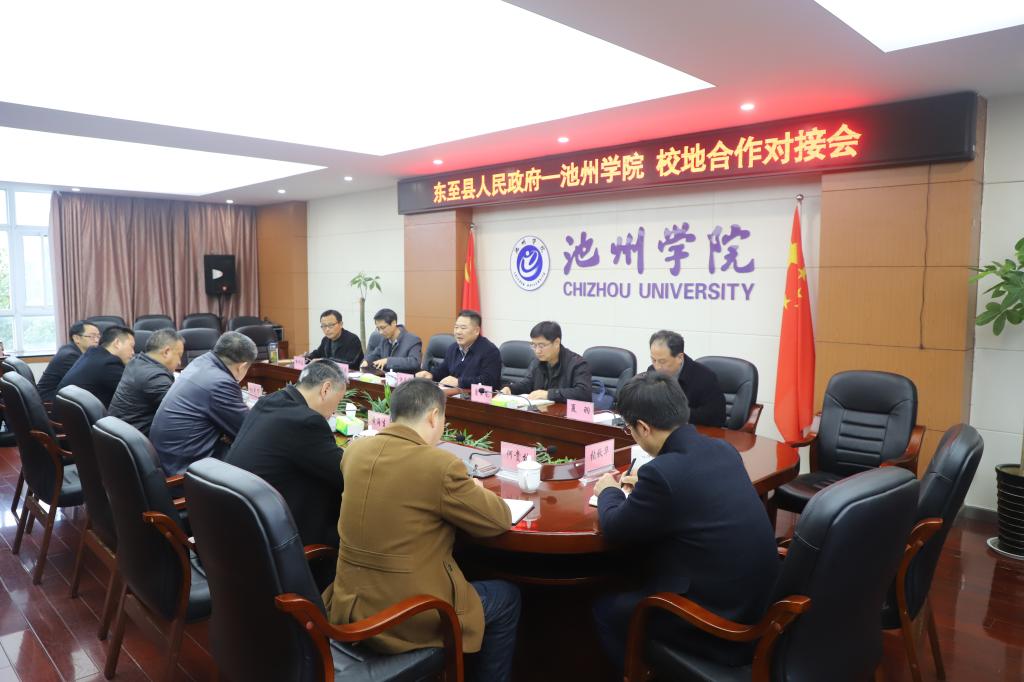 3月16日上午,东至县人民政府县长洪克峰一行来永利官网商洽校地合作事宜。校长柳友荣主持座谈会并讲话,副校长阳光宁出席座谈会。