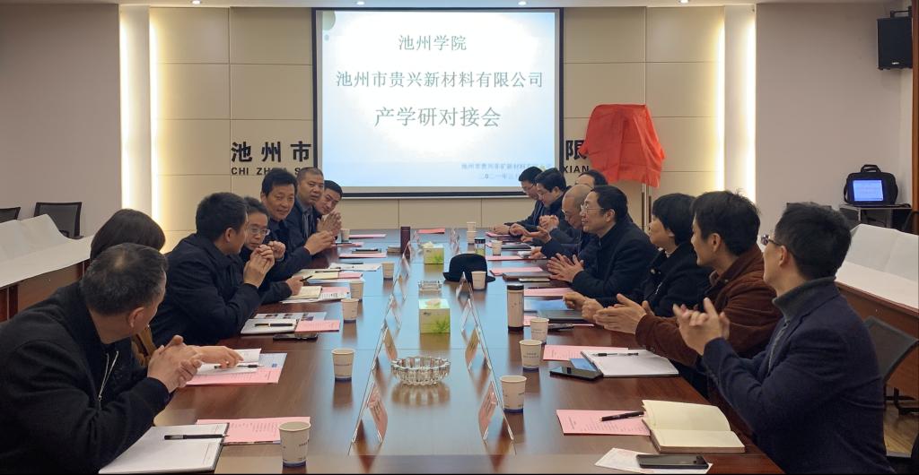 3月19日上午,永利官网与池州市贵兴非矿新材料有限公司的产学研对接会成功举办,副校长汪贤才出席对接会。池州市及贵池区科学技术局、梅街镇党委等有关部门领导参会。