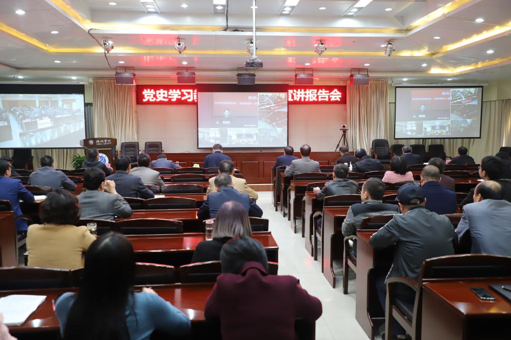 根据省委统一部署,4月6日,省委教育工委、省教育厅举办党史学习教育省委宣讲团宣讲报告会。省委宣讲团成员、省委党校(安徽行政学院)党史党建教研部主任郝欣富教授作宣讲报告,省委教育工委书记钱桂仑主持。永利官网在办公南二楼会议室设立分会场,校领导孙晓峰、柳友荣、崔国发、王延寿、汪海、阳光宁、汪贤才出席会议。