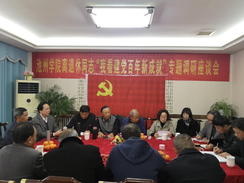 座谈会上,参会同志重温了入党誓词,学习了习近平总书记在党史学习教育动员大会上的重要讲话精神;学习了中共安徽省委老干部局《关于开展“我看建党百年新成就”专题调研活动的通知》及《补充通知》精神。
