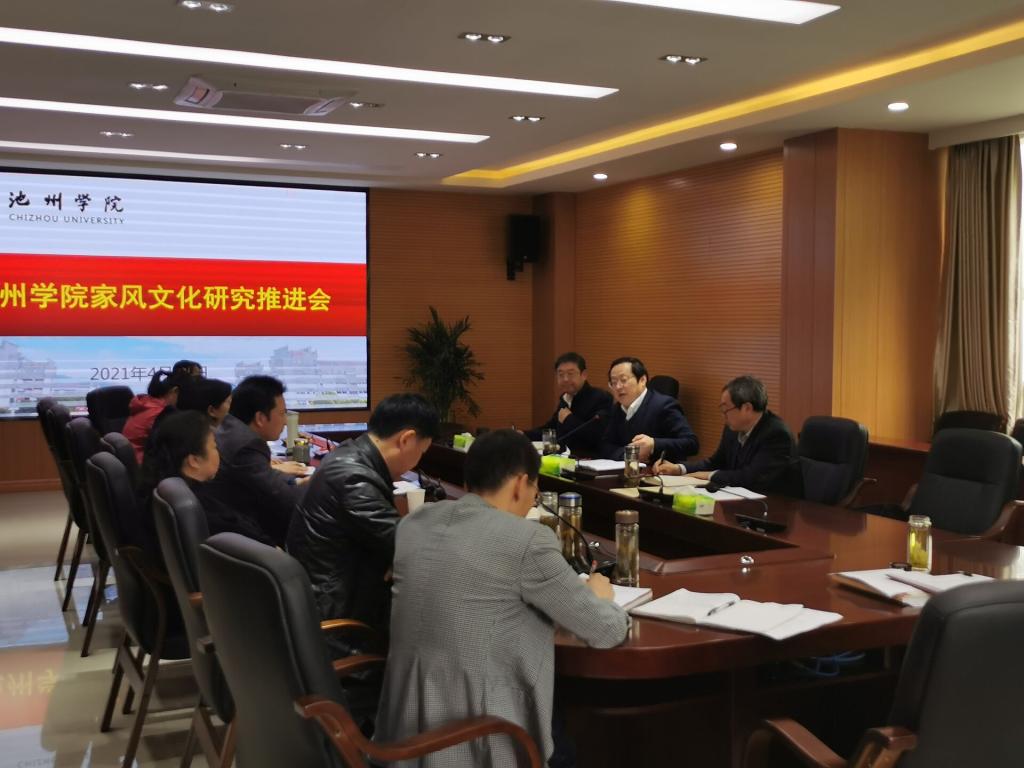 4月16日,永利官网召开家风文化研究推进会,校党委书记孙晓峰主持会议,校党委副书记崔国发、纪委书记汪海出席会议。