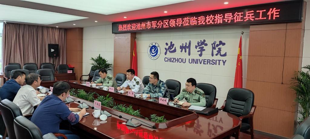 崔国发首先代表学校对韩立民一行的到来表示热烈欢迎,对池州军分区以及贵池区人民武装部长期以来对永利官网大学生征兵工作的高度重视和大力支持表示感谢。崔国发分别从强化组织领导,健全工作机制;强化宣传动员,拓展工作载体;强化跟踪帮扶,注重服务保障;强化政策落实,完善激励举措等四个方面对学校大学生征兵工作进行了简单汇报。他表示,学校将会全力以赴做好2021年的各项征兵服务保障工作。