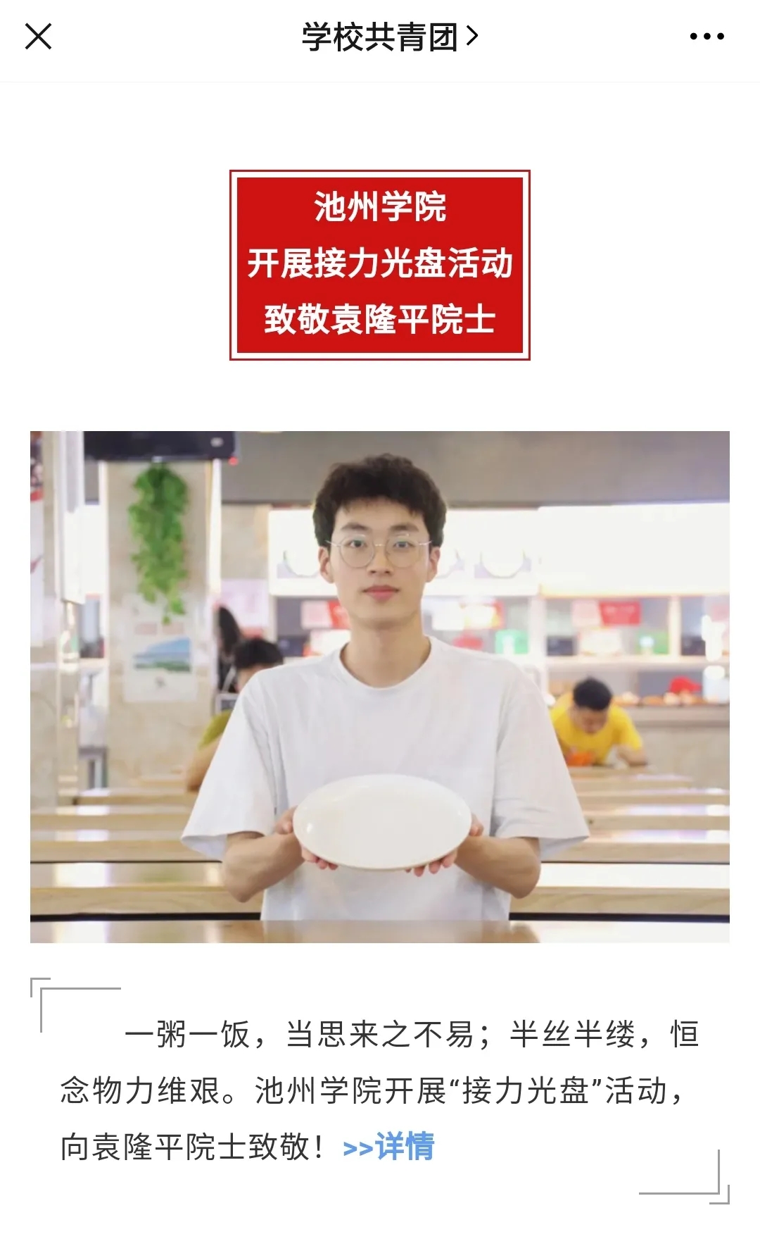 5月24日,池州日报微信公众号转载报道了永利官网“光盘行动”的倡议活动。同时,池州市广播电视台对永利官网师生积极践行“光盘行动”进行了采访,并将在近日播出。