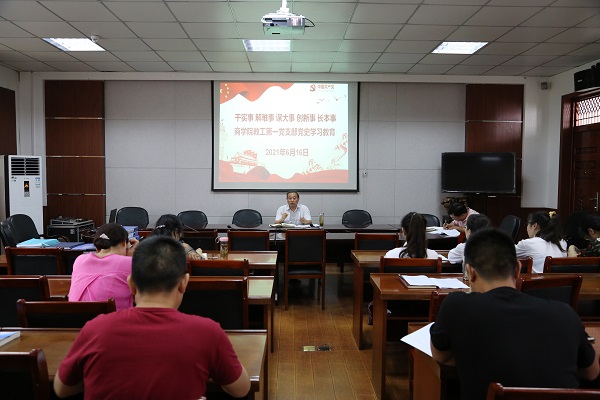 6月16日,校党委委员、纪委书记、监察专员汪海在商学院会议室为学院教工党支部作党史学习教育专题党课讲座。
