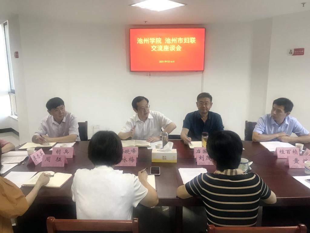 为进一步传承和弘扬优秀家风,打造家风文化的池州品牌,推动校地紧密合作,实现高校学术研究与地方文化建设的深度融合,更好地服务地方经济和社会发展,9月16日下午,校党委书记孙晓峰率队赴池州市妇联开展工作调研,党委副书记崔国发参加,市妇联主席刘茂华主持座谈会,市妇联领导纪咏梅、黄斌等陪同调研。