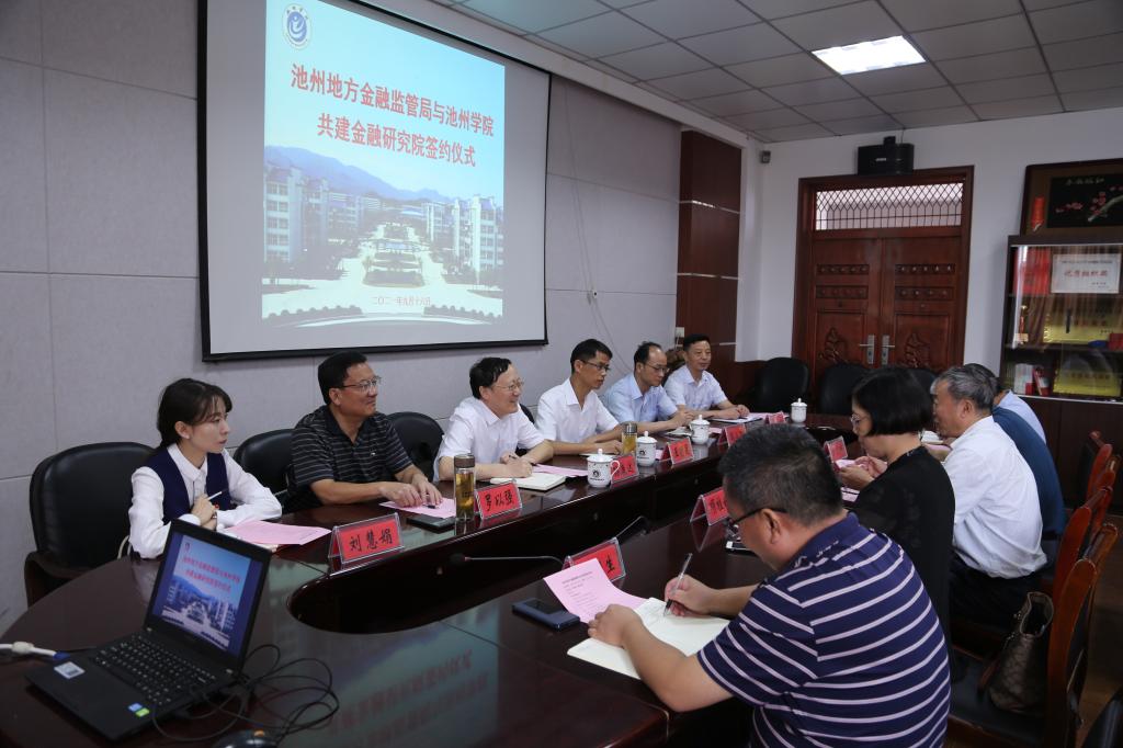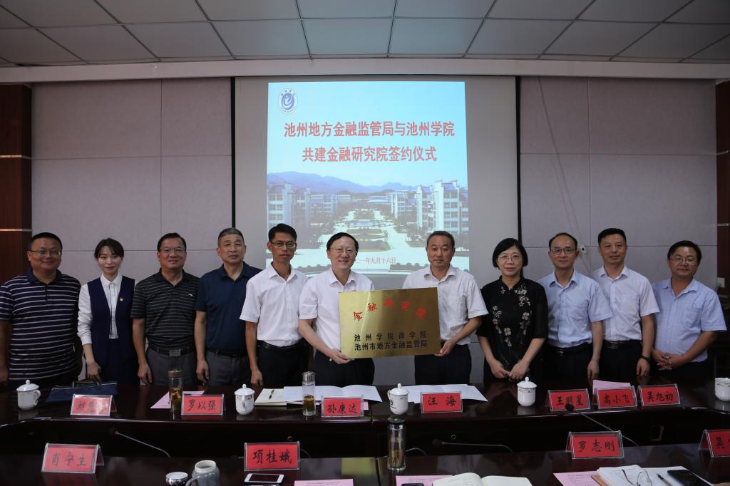 9月16日,ylzzcom永利总站线路检测与地方金融监管局共建金融研究院签约仪式在博识楼会议室举行。校纪委书记、监察专员汪海,池州市地方金融监管局局长孙康达、副局长罗以强,池州市委组织部人才办主任王明星,池州市建设银行行长高小飞,池州市交通银行行长刘慧娟,池州市九华农商行副行长吴旭初出席活动,商学院党政负责人参加活动。