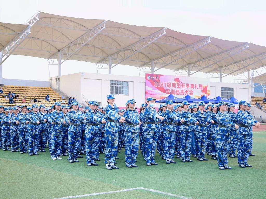整齐的队列,飒爽的军姿,各位2021级学生以澎湃的激情和饱满的热情在训练场上留下青春的身影。