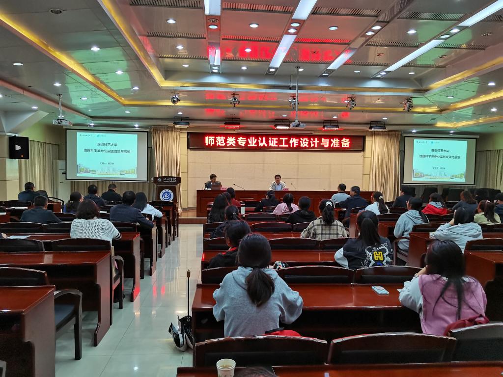 为扎实推进教学活动月常规活动,做好师范类专业认证工作,10月15日,学校邀请安徽师范大学地理与旅游学院博士生导师、曹卫东教授就师范类专业认证相关工作在行政南二楼会议室进行了专题辅导。