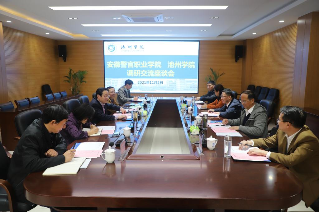 11月2日下午,安徽警官职业学院院长操申斌、副院长周善来等一行5人来永利官网调研交流。校党委书记孙晓峰主持座谈会并讲话,副校长汪贤才出席座谈会。