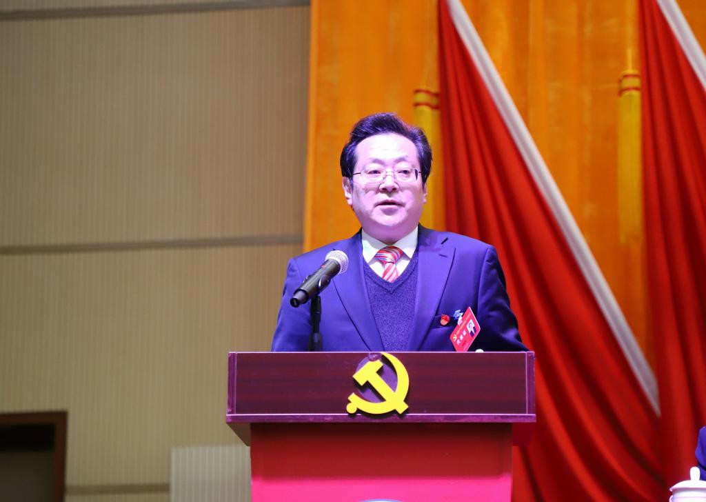 博古礼堂内,主席台上10面鲜艳的红旗分列两侧,簇拥着镰刀和锤头组成的党徽。正式代表、特邀和列席人员等与会人员精神饱满,气氛隆重而热烈。