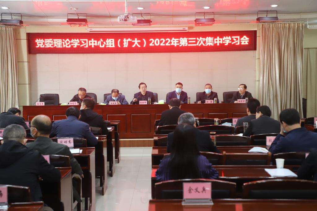 3月30日上午,学校党委理论学习中心组(扩大)2022年第三次集中学习会在办公南二楼会议室召开。院党委书记孙晓峰主持学习会并讲话,院领导张立驰、王延寿、汪海、阳光宁、汪贤才出席会议。
