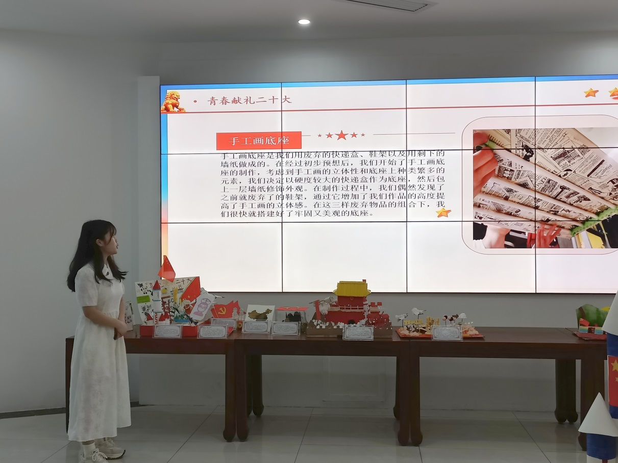 大赛以“喜迎二十大,永远跟党走”为主题,共收集全校30余件作品,经过初选,共推选出9件作品进入决赛。经评委老师现场评选,王与同等同学的作品《忆往昔峥嵘,创明日辉煌》,孔鲁建等同学的作品《盛世中国》荣获一等奖;张晓艾等同学的作品《青春献礼二十大》,徐峥等同学的作品《见证》,张稳婷的作品《万里江山》荣获二等奖;陆金新等同学的作品《中国梦,航天梦》,魏沁雪同学的作品《城规之光,照文明之城》,刘骏等同学的作品《万疆》,汪洁的作品《生在国旗下,长在春风里》荣获三等奖。