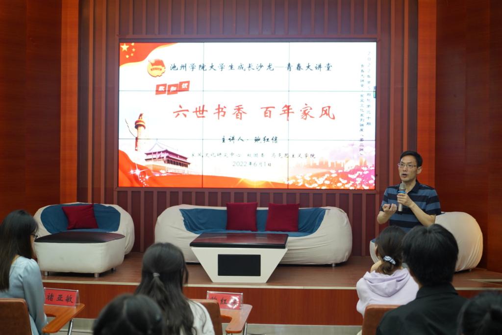 6月1日,ylzzcom永利总站线路检测大学生成长沙龙“青春大讲堂”2022年第五期(总第三十期)在大学生活动中心举行。马克思主义学院副院长、家风中心副主任鲍红信博士以“六世书香 百年家风”为主题,为现场师生带来一场精彩生动的家风教育专题讲座。