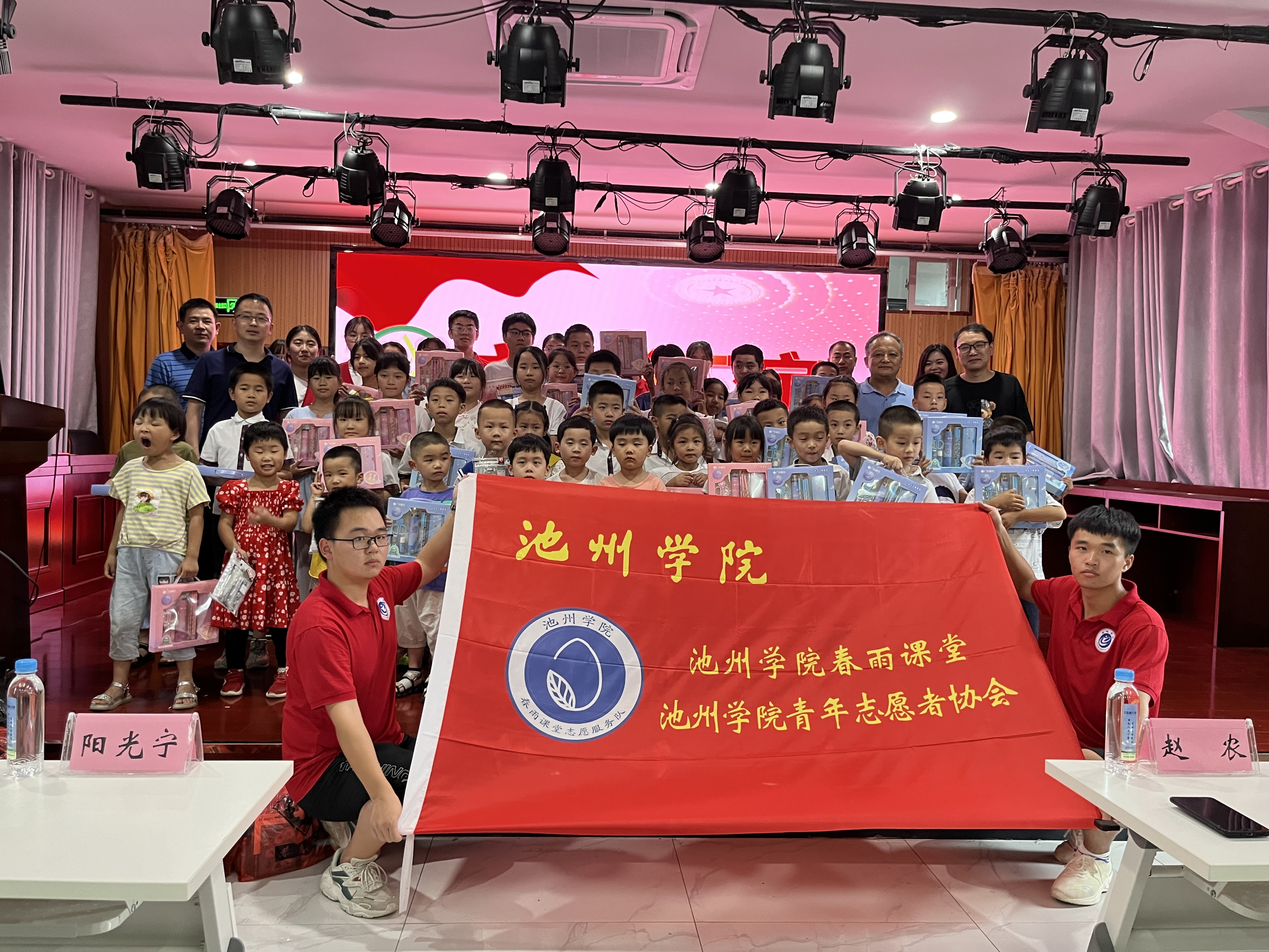 在观看了志愿者与小朋友们一起精心准备的文艺汇演后,阳光宁一行向孩子们赠送了学习用品,给实践团队送去了生活用品。