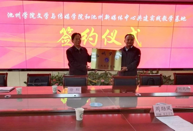 11月22日下午,永利官网与池州新媒体中心共建实践教学基地签约暨揭牌仪式在池州日报社举行。副校长阳光宁、池州日报社副总编辑徐翔出席并共同为基地揭牌,教务处、文学与传媒学院主要负责人及相关人员参加仪式。