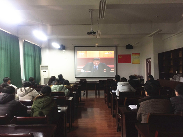 基层党组织也组织师生在多媒体教室、食堂、寝室等场所认真收看大会直播。