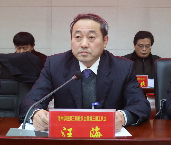 下午2点整,大会召开第二次正式会议。校党委副书记孙晓峰作总结讲话,会议由校纪委书记汪海主持。