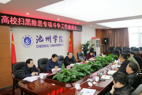 3月29日,池州市委常委、政法委书记刘礼生来永利官网调研指导扫黑除恶专项斗争工作,并在行政北三楼会议室主持召开座谈会。副校长汪贤才出席座谈会。市扫黑办、市公安局,安徽卫生健康职业学院、池州职业技术学院有关负责同志和永利官网办公室、宣传部、学生处、保卫处等部门负责同志参加座谈会。